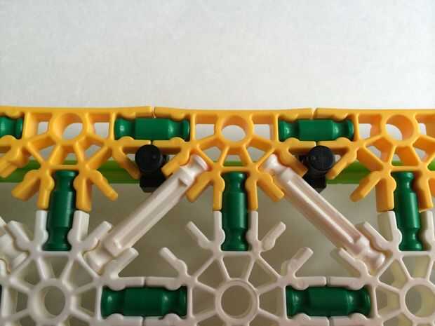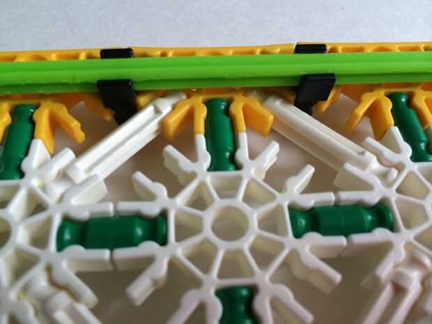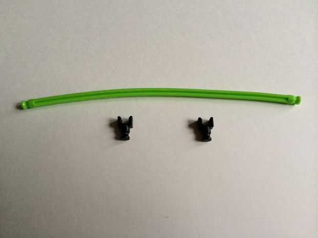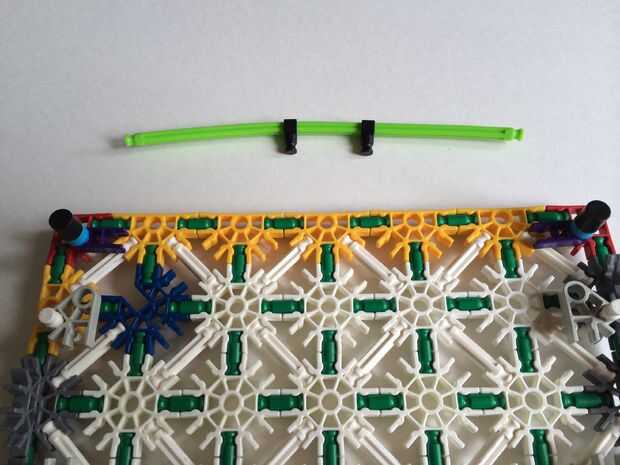 Luego, fije dos conectores "Y" a una varilla flexible verde, teniendo cuidado de asegurar que se enfrentan a la misma dirección.