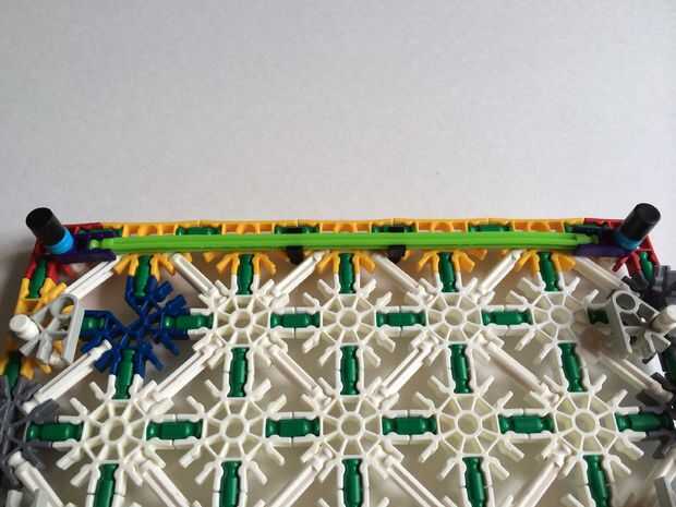 Fije la varilla flexible verde a ambos de los conectores de lazo color púrpura en las esquinas. Cuando conectado la "Y" conectores deben encajar en las aberturas en el respaldo de la caja.