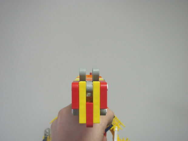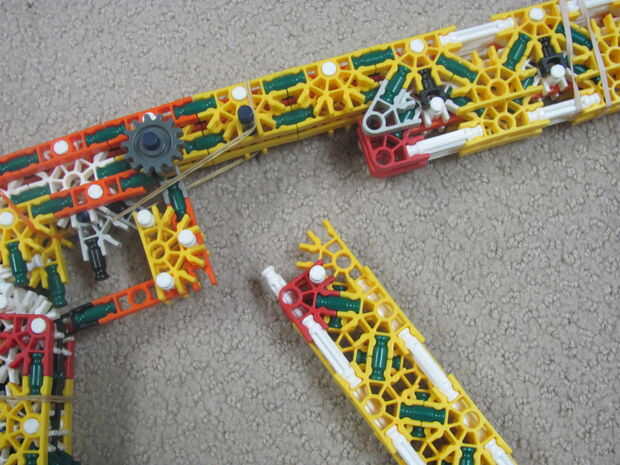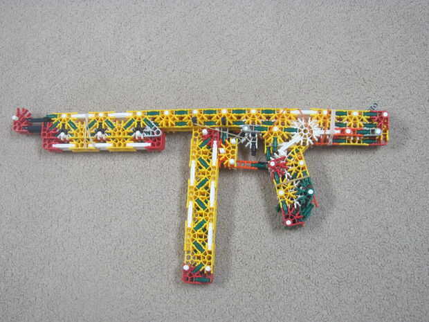 It is a though little K'nex gun that I made. Puede tirar una caña de K'nex blanco 8.5 pies (2,57 m). No es grande porque soy nuevo en instructables, pero merece la pena hacer y es bastante simple por lo que sólo toma unos muinets para construir. Perd