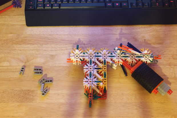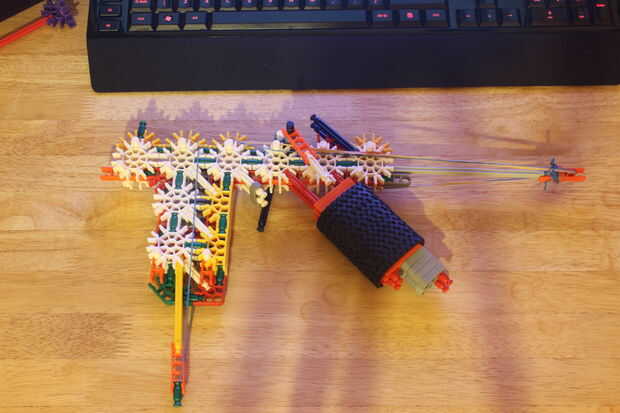 una muy fácil de construir K'NEX arma utilizando sólo piezas básicas y cortarla sorprendentemente fuerte y extremadamente potente. Esto puede ser un juguete pero es mucho más poderoso que su pistola de media así que ten cuidado con él.Tiempo: aproxim
