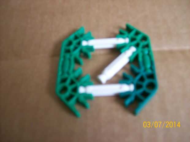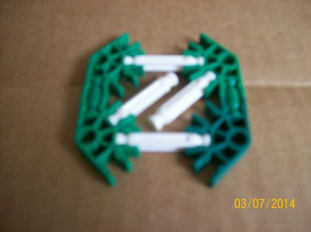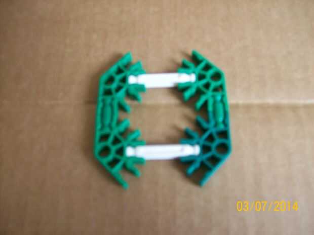 Conecte las barras verdes con el clip verde y luego fije los clips blanco horizontal y diagonalmente. A fin de agregar un conector naranja y girar. Que te diviertas