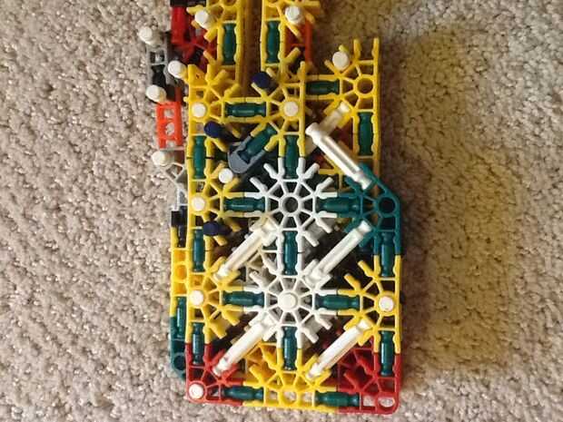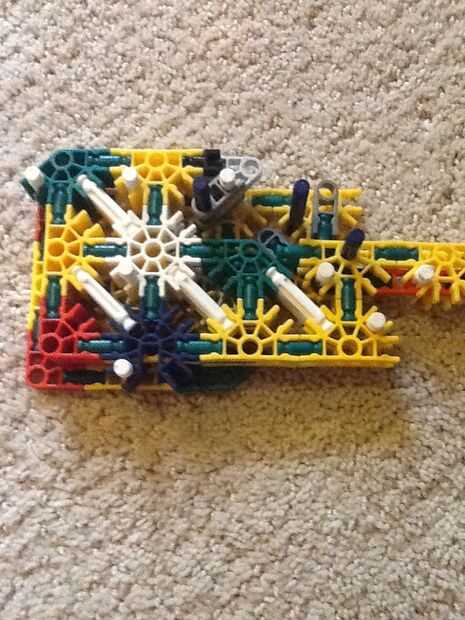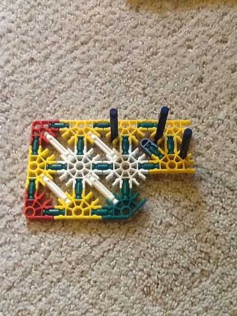 Mi hermanita le encanta su telar del arco iris y haciendo pulseras y cosas en su telar. Tiene una caja llena de bandas de colores. Miré a su telar y parece bastante sencillo así que decidí construir mi propio telar de K'NEX piezas. He intentado hacer