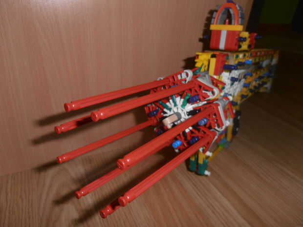 Porque no tengo suficientes conectores de dos clip, usé los rojo en la torreta, que es la segunda razón para elegir este nombre.