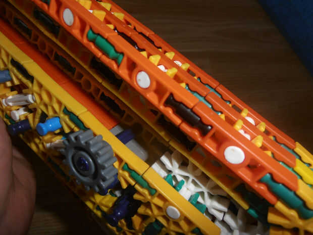 Por encima y por debajo de las vigas son filas de conectores naranja, que les impide mover hacia arriba o hacia abajo.