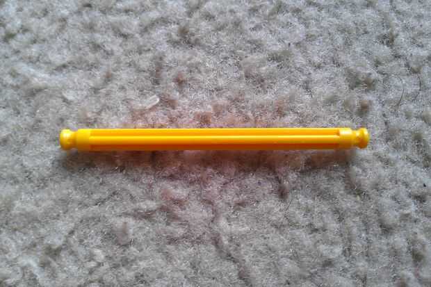 Conecte un conector naranja a una barra amarilla como mostrado. A continuación, agregue una barra blanca y un separador gris. Luego, agregar separadores de azul y gris a cada lado de la barra amarilla. Finalmente, sujete la barra amarilla a la parte delantera del brazo.