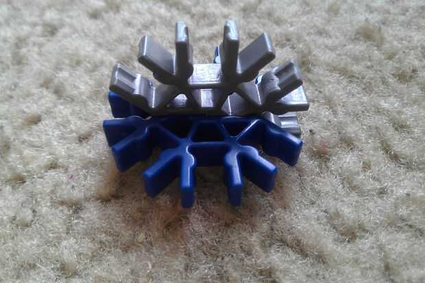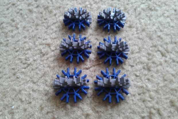 Un conector gris y un conector azul y deslícelos juntos. Repita el procedimiento para obtener seis piezas.