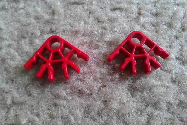 Tomar dos conectores rojo y adjuntar al final del brazo usando barras verdes.