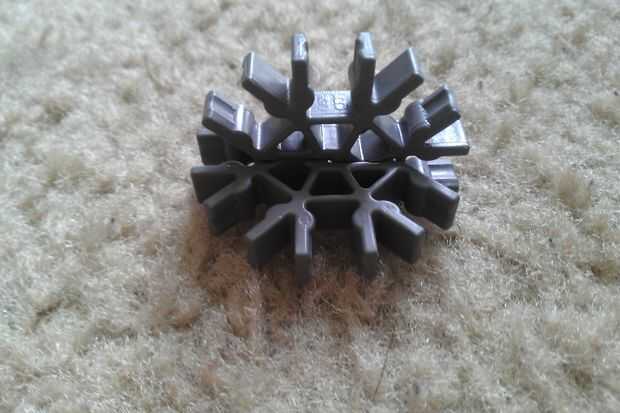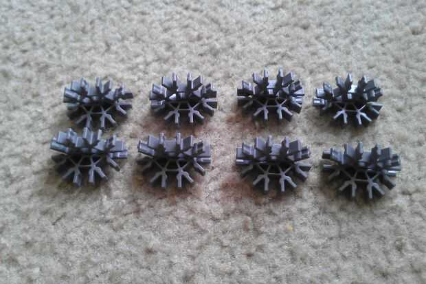 Tomar dos conectores gris y deslícelos juntos. Repita el procedimiento para obtener ocho piezas.