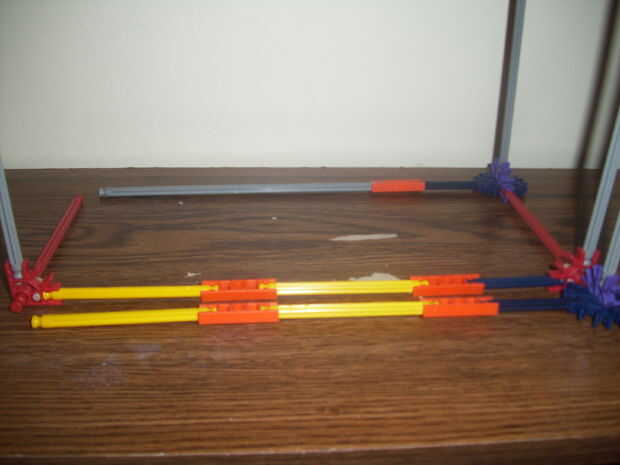 cuando disparas el gran objetivo del destino poco sale. Se necesita,1 barra gris4 barras de amarillo1 panel azul grande1 pequeño panel azul3 conector rojo o gris2 conectores azulesy 3 Cañas blancoPaso 1: El soporte Esto es lo que sostiene el blanco.