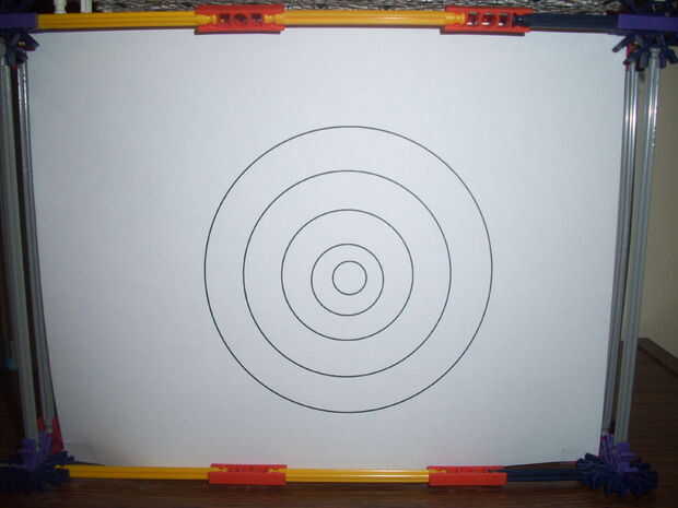 esto es para apoyar un objetivo redondo de cuchillo competitivo y tomahawk lanzando práctica utilizando la Alianza de lanzadores de cuchillo americano reglas y regulaciones. La circular deberá ser un mínimo de 16 pulgadas (41 cm) de diámetro y 8 pul