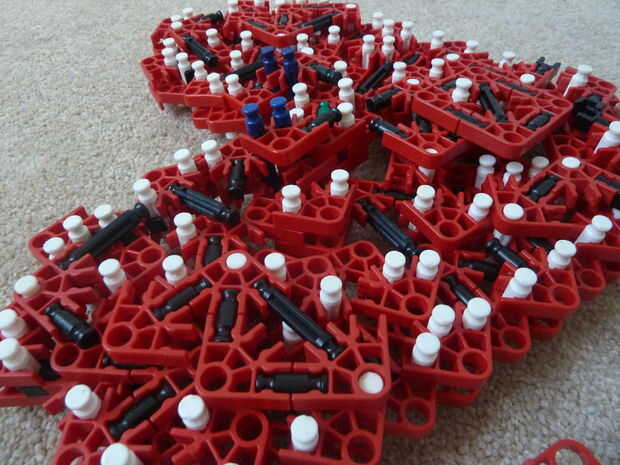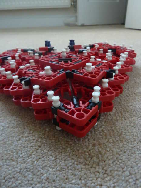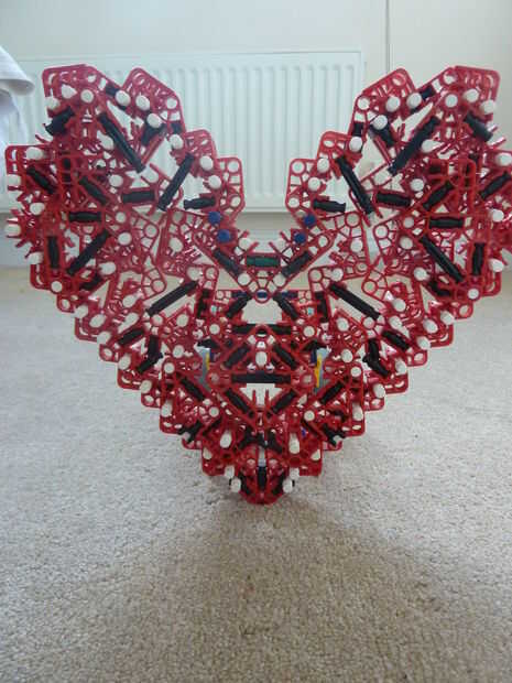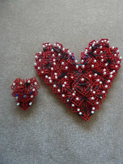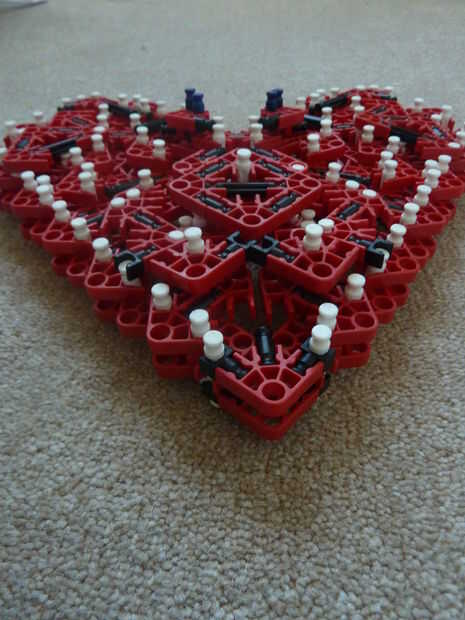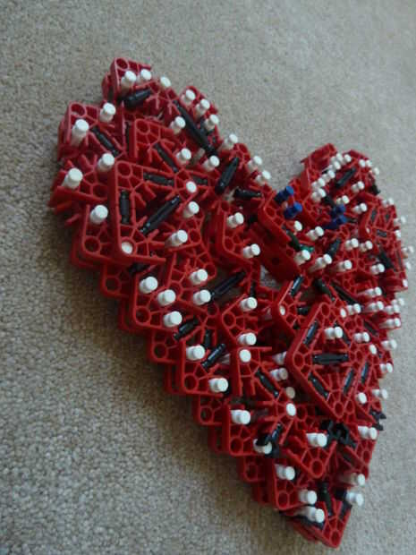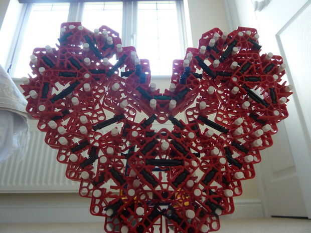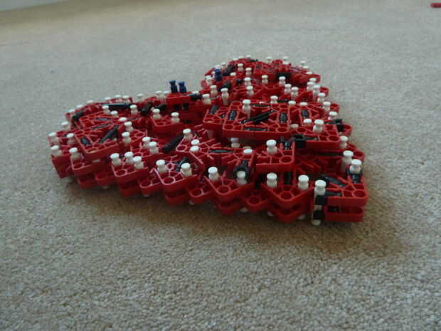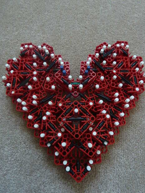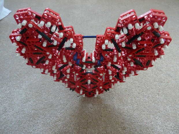 Sé que en el pasado, otros corazones de K'nex han sido escritos, pero a diferencia mía, lo suyo no es rellenado y me refiero a... de qué sirve un corazón si es no es llena de amor y felicidad - los 2 ingredientes más importantes para un corazón. Además, se trata de la única K'nex corazón completamente de un solo tipo de conector: conectores rojo!