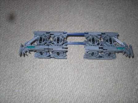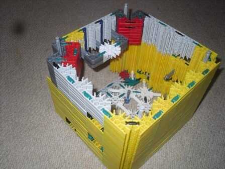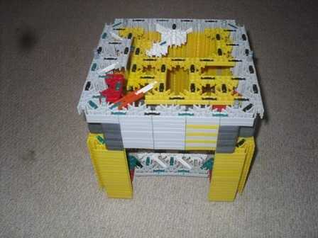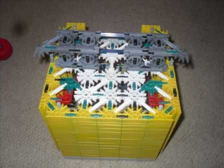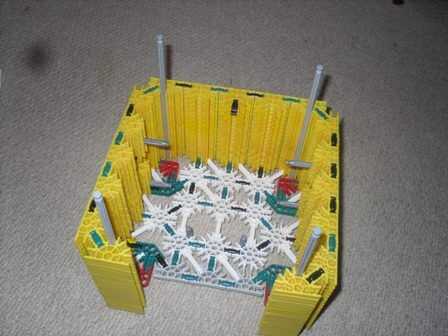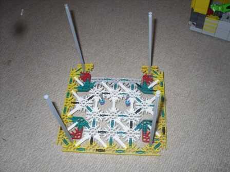 Imagen 6 , construir el siguiente 6 capas como se muestra. Aquí se puede apreciar el Monte para tarjeta Cyber K'nex. Deje un espacio en los conectores 3 vías rojo de la 2ª de arriba un lado derecho.