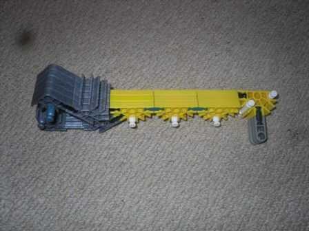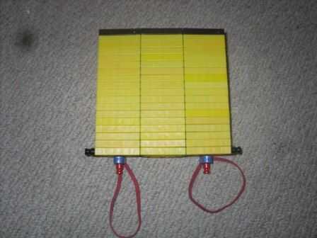Imágenes 14 y 15 , la escotilla, hacen la tapa como se muestra. Los elasticos se sujetan con clips azul. Asegúrese de utilizar una pequeña cantidad de cinta en los extremos de las barras de granito para hacer un buen ajuste en los conectores amarillo y marrón.