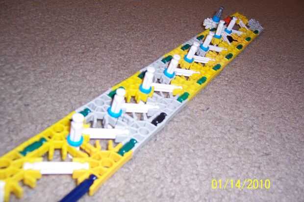 aquí es un nuevo concepto en armas de K'nex. No critique porque parece simple, realmente funciona realmente muy bien y lanza a K'nex mucho mejor de lo que puede parecer. Estaba trasteando por el otro día con una barra gris y un conector gris y encont