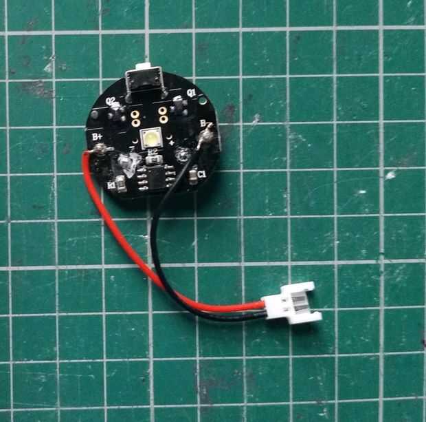 Quité el soporte plástico, que conectado a 2 cables (+/-) a un enchufe hembra y coloqué el LED dentro de la tapa de una botella de agua,