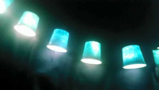 Estoy muy contento con cómo salió pero la imagen no muestra el marbleizing como me gustaría pero las luces iluminaron muestra lo bien. Tenía los materiales de los proyectos anteriores y compré las luces de Navidad por $1.00 después de Navidad.
