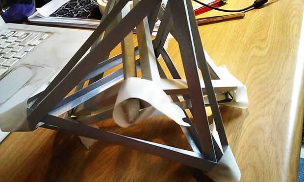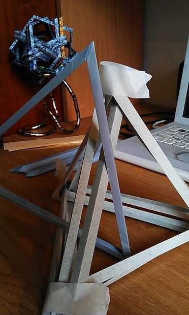 Hola!Se trata de una escultura de 6 prismas rectangulares, formando un cubo.El plegado es muy sencillo, así como el tejido, los bits sólo duros están sujetando el pasado algunos pedazos de papel al final.Este modelo se hace evidentemente sin pegament