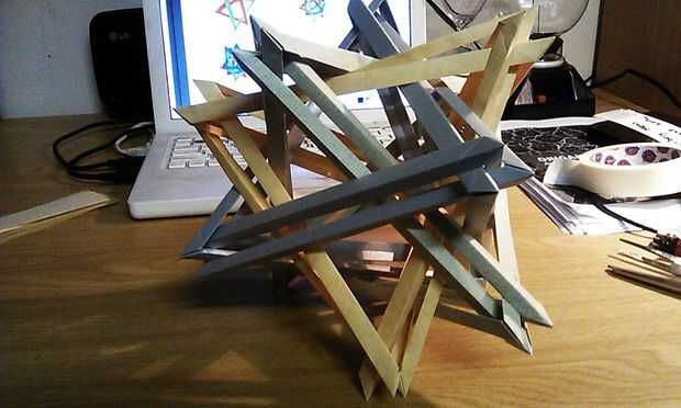 Hola!Se trata de una escultura de 6 prismas rectangulares, formando un cubo.El plegado es muy sencillo, así como el tejido, los bits sólo duros están sujetando el pasado algunos pedazos de papel al final.Este modelo se hace evidentemente sin pegament