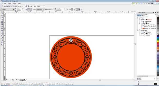Para la frontera del diseño encontré un círculo celta con un fondo transparente. He importado este diseño en el dibujo y nuevamente de tamaño. Otra vez esto se hace en la capa grabado.