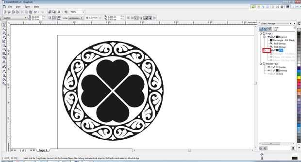 A continuación, haga clic en el icono de ojo pequeño al lado de la capa de Cut. Esto ocultará todo lo que hemos creado en la capa de corte.
