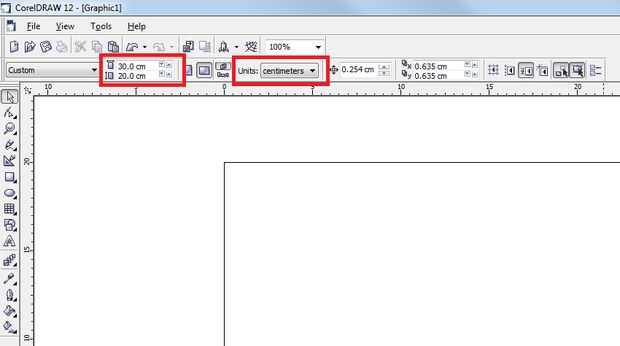 Antes de empezar a diseñar su colgante, hazte un favor y cambiar algunos ajustes preliminares dentro de CorelLASER. En primer lugar, cambiar las unidades a centímetros. Cambiar el tamaño de lienzo 30 cm x 20 cm. Cambiemos esto porque esta es el área máxima de corte de cama de K40.