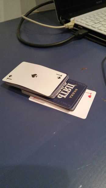 De toeschouwer heeft nu als Card de ene Card die overeenkomt met de gekleurde Card die daar op tafel ligt.