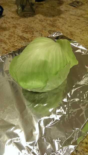 Cubierta de la primera hoja de repollo relleno con ingredientes con una segunda hoja que está vacía. Asegúrese de que el segundo pieice está al revés para que cuando poner junto, la hamburguesa parece un repollo de tamaño completo.