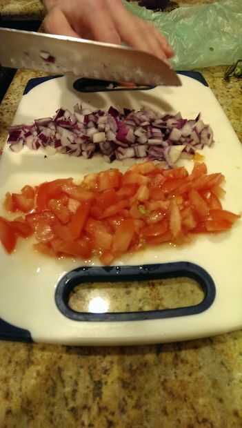 Paso 4: Cortar finamente el tomate y cebolla
