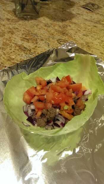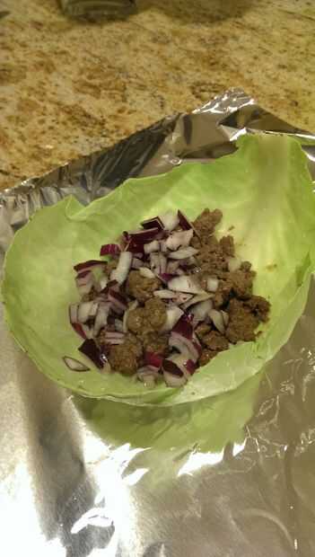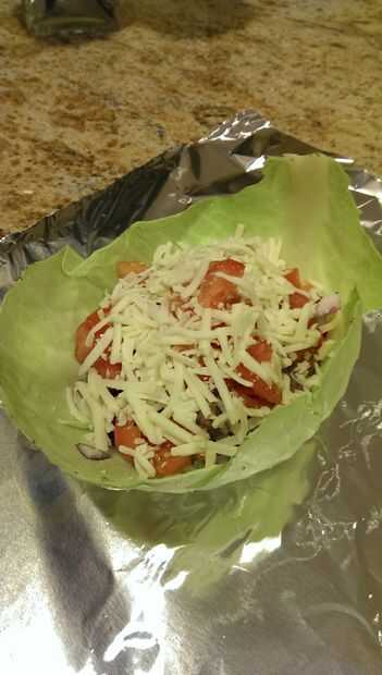 Comenzar a colocar los ingredientes en la hoja de una col a partir de la mitad de la carne. Añadir la picada cebolla y tomates con las porciones que sean de su agrado. A continuación, agregue algunos queso rallado, otra vez está hasta que usted cuánto rallado queso que gustaría añadir.
