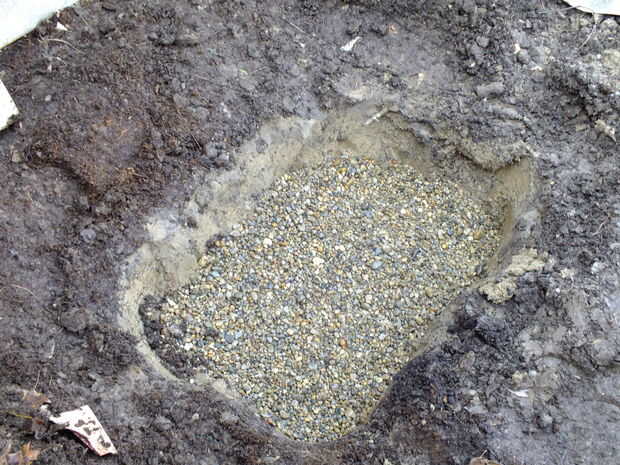 Rellene una pulgada con gravilla o arena para que tenga una superficie plana para trabajar con.
