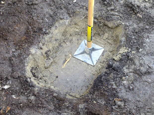 Después de cavar, utilizar un pisón de mano crean una base para trabajar en.