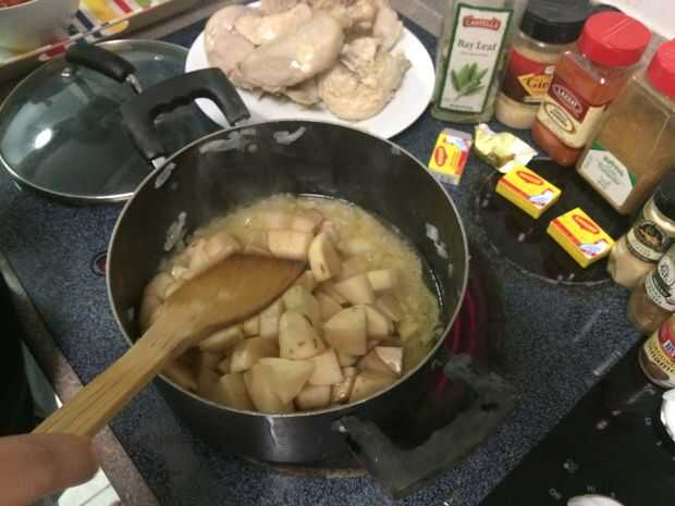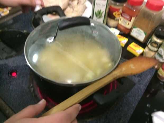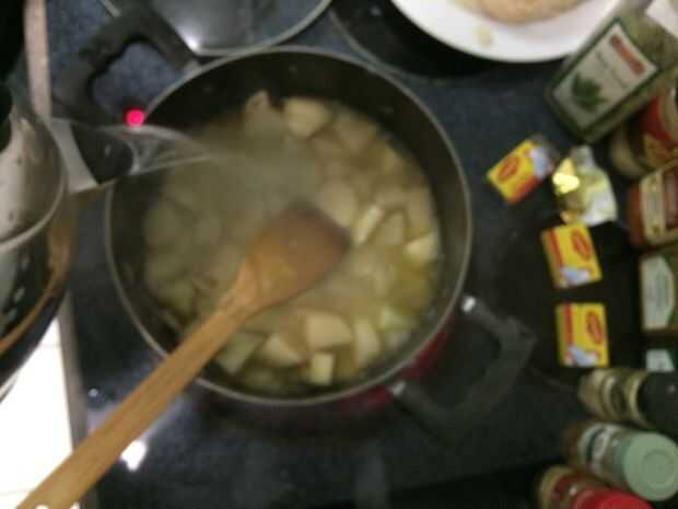 -Poner cubos de patatas en la olla y añadir agua hirviendo hasta que los cubos de papas estén completamente sumergidos.