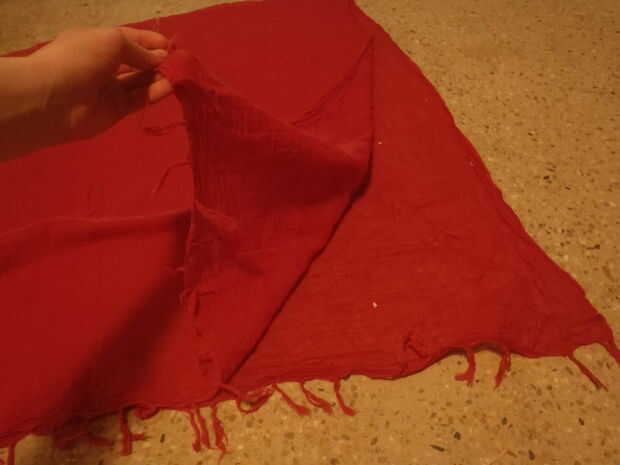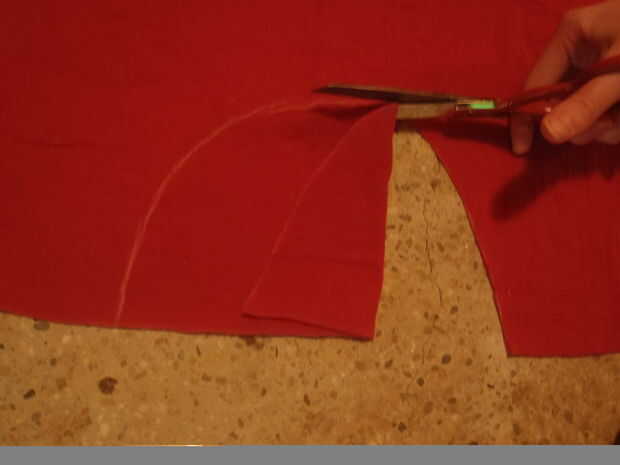 Con el material plegado en mitad, para que el doblez está en la cima, encontrar el centro y dibuja un semicírculo superficial (hacerla menos profunda que la imagen será mucho que grandes). Entonces cuando estás feliz con la forma, recórtela.