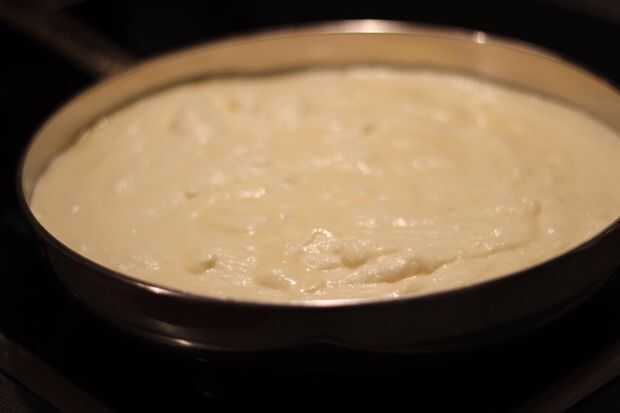 Mientras se precalienta el horno, derrite 1 cucharada de mantequilla en su recipiente (apto para horno!) y añadir la masa (fuego medio). Esperar aproximadamente 3-5 minutos hasta que la pega del Kaiserschmarrn es baken doradas.