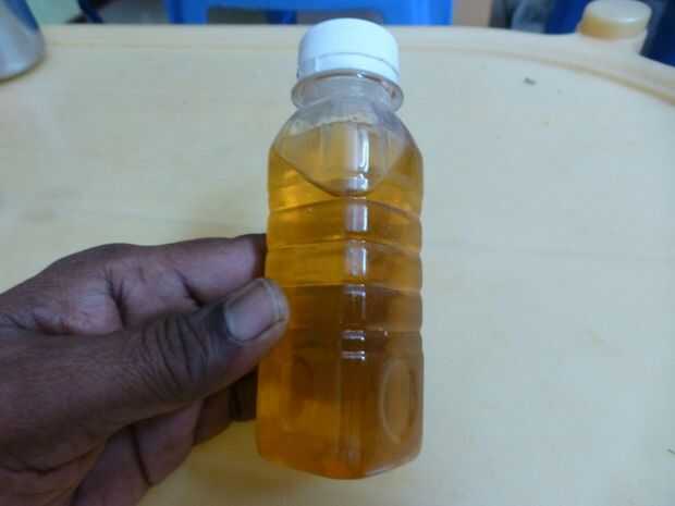 Vamos a hacer una mecha con una longitud pequeña de la tira del vendaje de algodón empapada en polvo de madera de la sandalia + pasta de aceite de ricino, quemadura con aceite de ricino, recoger el hollín y hacer una pasta con unas gotas de aceite de ricino.