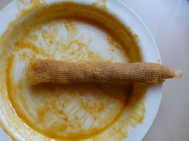 • Empape el paño en el sándalo + pasta de aceite de ricino