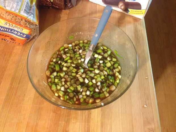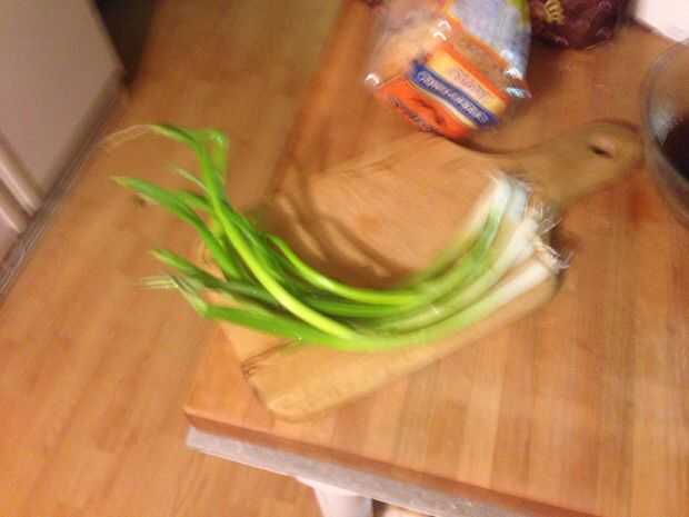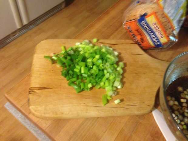 - 1/3 taza de cebollas verdes cortadas en rodajas