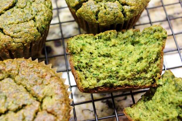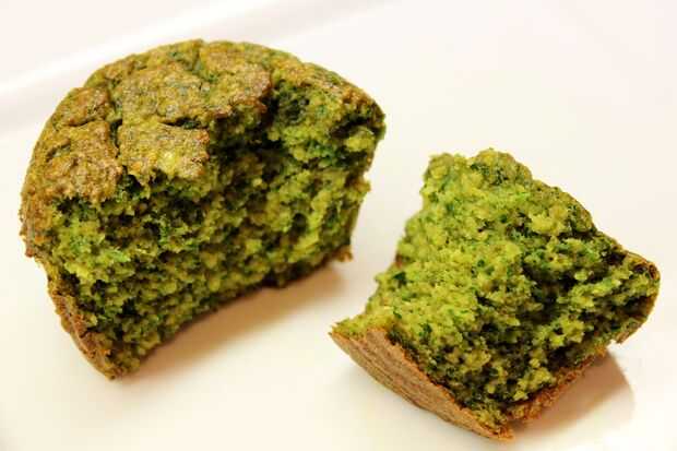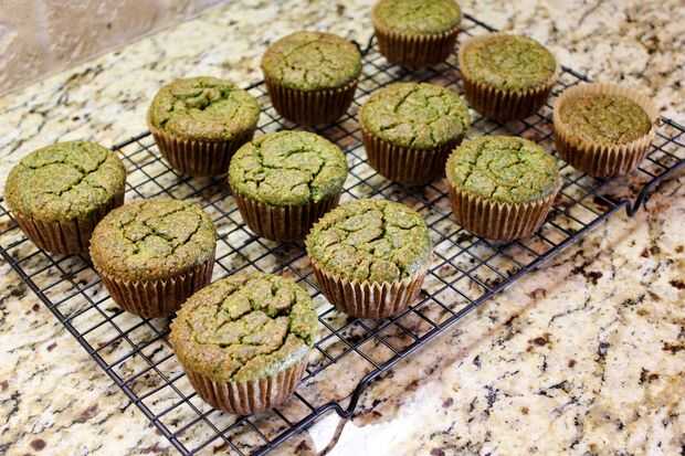 Notas: Quiero recetas donde se llega a volcar todos los ingredientes a la vez! No tengo tiempo para recetas de varios pasos. Yo honestamente generalmente hacer con sólo 1/3 taza de azúcar morena (en lugar de 1/2), pero mi hijo está acostumbrado a comer repostería con muy bajo nivel de azúcar. Mayoría de las personas prefiere un panecillo ligeramente dulce... así que mi consejo es empezar con 1/2 taza de azúcar, y si te gusta, hacer de nuevo con sólo 1/3 taza y ver si todavía te gustan. Estos muffins son una gran manera para obtener una agradable verdura verde en su hijo (o usted) en el desayuno. Me sirven con tocino, huevos y fruta :)