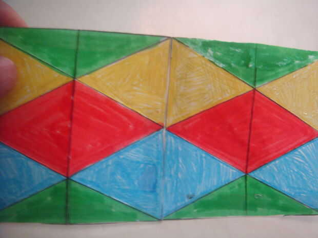Ahora, la línea les en una fila como se muestra, es cómo se van juntos (Asegúrese de que los vidrios de la hora son los lados que se conectan y no los diamantes medio) luego poner cinta en los bordes y conecte uno al otro, finalmente tomar los dos extremos sueltos y con cinta adhesiva para formar un bucle.