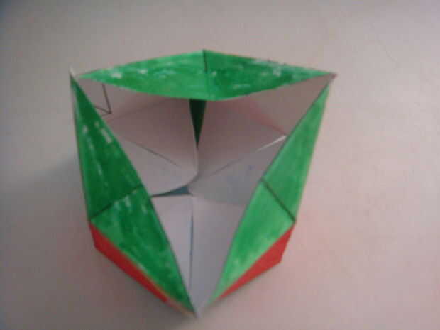 El paso final es formar el juguete es uno mismo, empezar por doblar las pestañas verdes (o cualquier color hacerlo), a continuación, doble hacia adentro las lengüetas de azul, puede ser un poco complicado! A continuación Dale la vuelta y hacer lo mismo, en este punto usted está básicamente terminado todo que tienes que hacer es a su vez que un par de veces hasta llegar a la parte con la parece, con solo cinta aquellos y su papel de Kaleido es completa!
