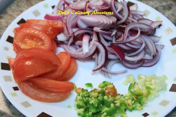 3. cortar y picar cebollas, chiles verdes, ajo y tomate y mantienen a un lado.