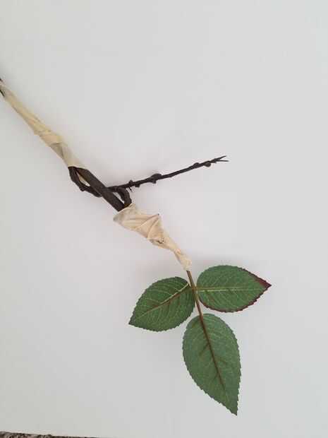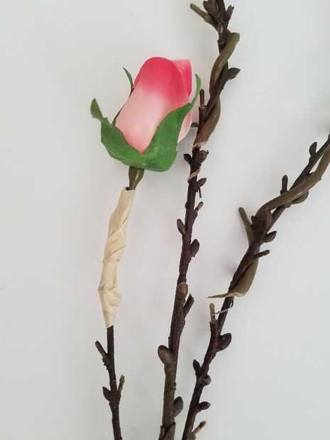 2. hay tres rosas en la parte superior del arco, de cinta y los cableados en espiral por lo que permanecen en la rama.
