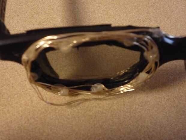 3. Tome una mitad de las luces y el pegamento en el marco de una de las lentes de uno en uno hasta que quede sin luces