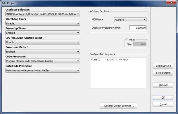 En configuración del proyecto desactivar el pin de reset y reloj fuente como reloj interno.