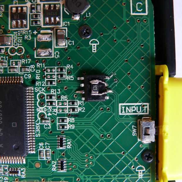 Ahora todo lo que necesitamos es fuente de alimentación. Si remontamos del pin 26 tenemos condensador C8 y luego suelda perfecto punto. Asegúrese de utilizar cable aislado. La mía es de un inductor.