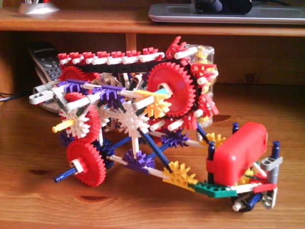 Este mi Robot programable. Puede mover izquierda, derecha y hacia adelante, que estoy trabajando en la fabricación de un robot más grande que escribe palabras! Pero este simple programa. Basta con pulsar las barras blancas en la cadena para hacerla mover izquierda o derecha. Para hacerlo avanzar, coloque las barras en el medio