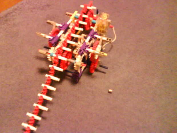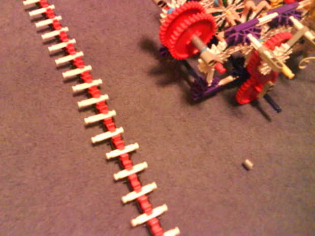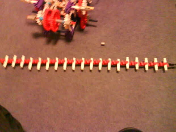 La cadena a utilizar es largo 19 conectores y la varilla del blanco están conectados en un ángulo. El modelo de robot para moverse en un cuadrado es la siguiente: