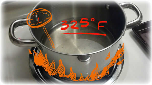 Gire el quemador a fuego medio-alto y llevar el aceite a unos 325 grados F.
