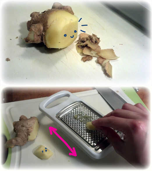 Corte de un pedazo de 1 pulgada. Si gusta mucho jengibre, añadir algunos más!