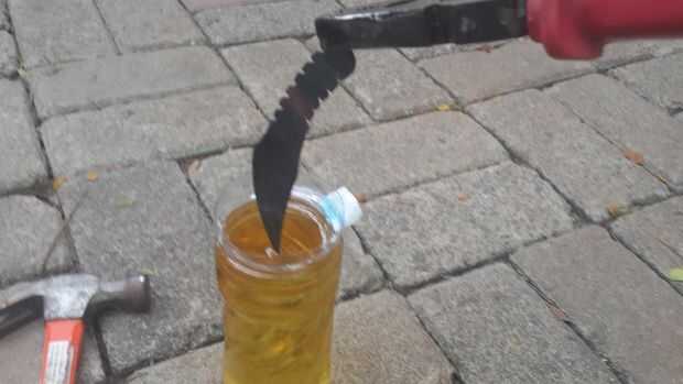 4. el cuchillo es frágil ahora, y puesto que utiliza acero realmente suave, se hizo más duro pero no frágil. así que no necesito hacer ningún Temple. Pero si se utiliza acero de alto carbón, a lo primero.